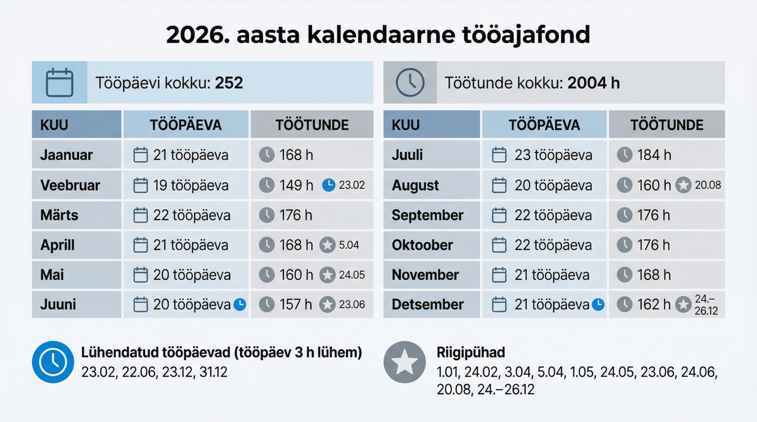 Shortened working days: According to the Estonian Employment Contracts Act, the working day is 3 hours shorter before public holidays that do not fall on a weekend. In 2026, there will be four such shortened working days: